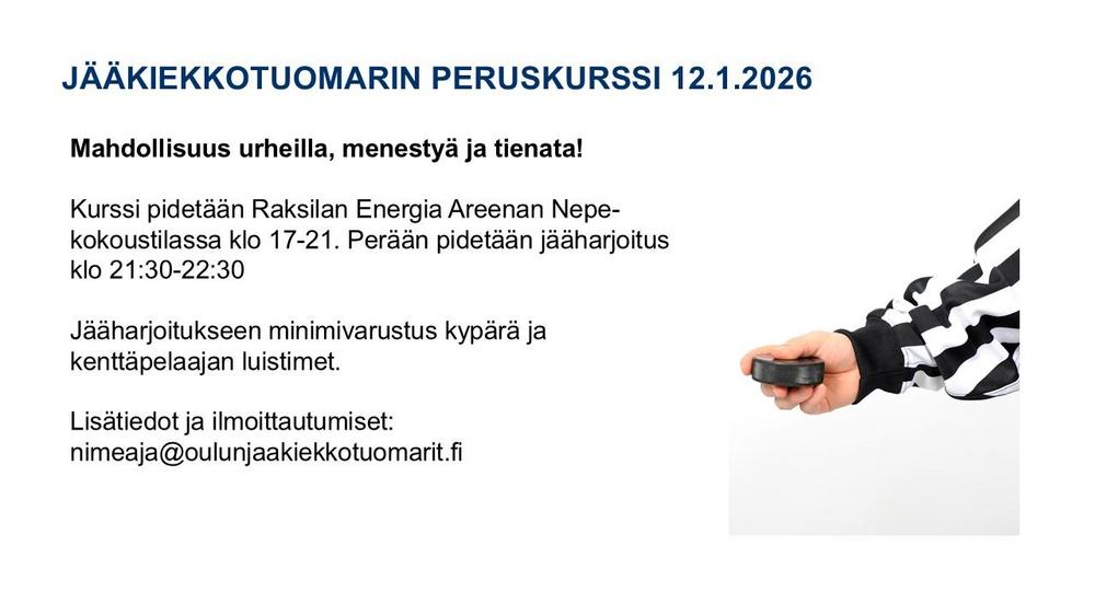 Kiinnostuitko jääkiekkotuomarin tai ottelutoimitsijan tehtävistä, ota yhteyttä.
